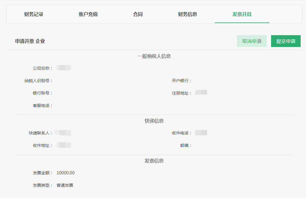 4. 发票金额是系统根据充值金额自动生成,不能改动。